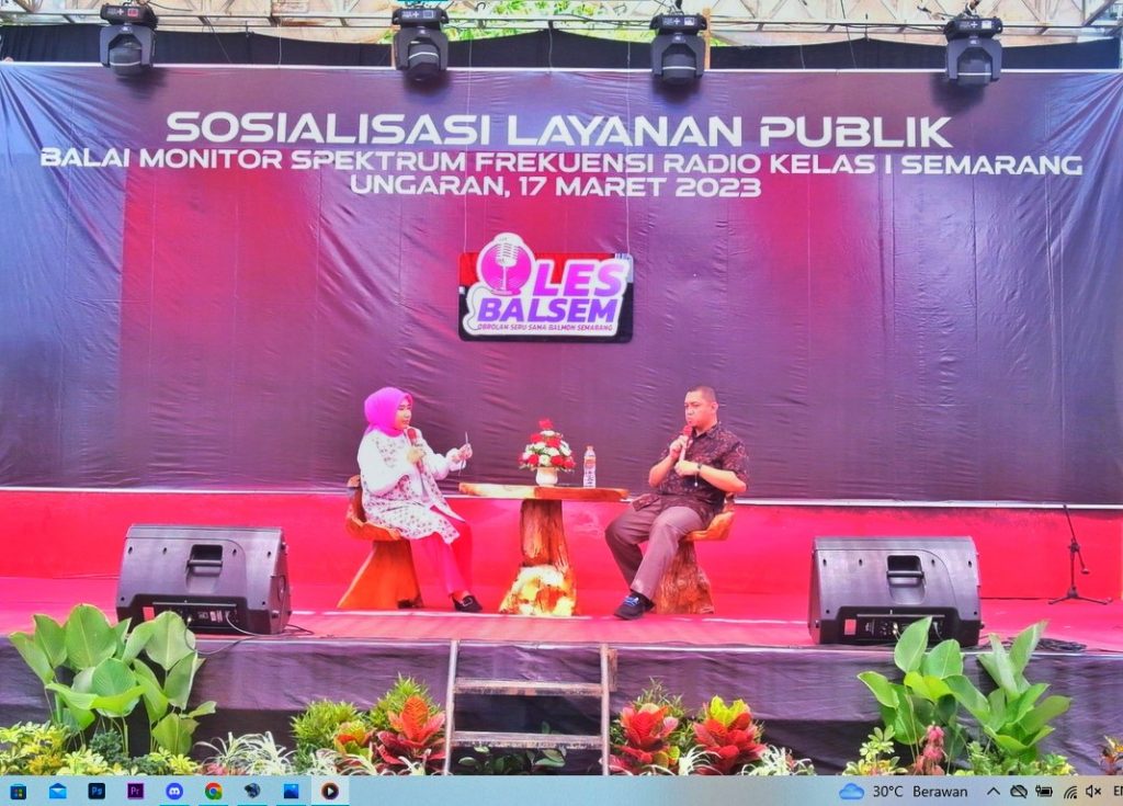 Selain dukungan dalam bentuk booth pameran yang menampilkan informasi berbagai program kerja serta layanan konsultasi perizinan frekuensi radio, Balmon SFR Kelas I Semarang juga menggelar sosialisasi layanan publik. Melalui sesi talkshow Oles Balsem – Obrolan Seru Sama Balmon Semarang bertemakan “Perizinan Stasiun Radio (ISR) Dinas Penyiaran”, Balmon Semarang berupaya memperkenalkan diri kepada masyarakat khususnya di wilayah Jawa Tengah (17/3).