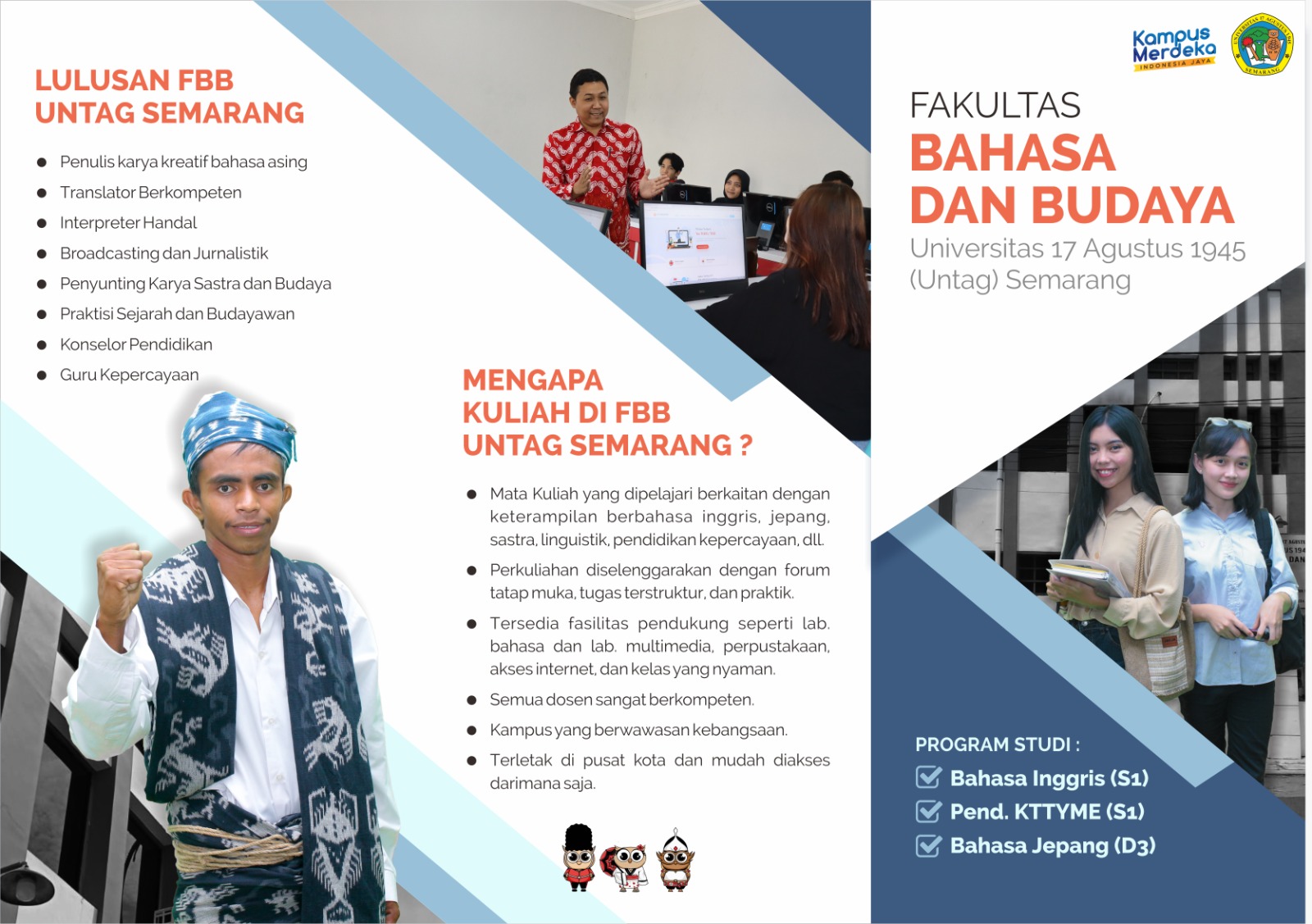 Selamat datang di website Fakultas Pendidikan Bahasa dan Budaya, Universitas 17 Agustus 1945. Kami berkomitmen untuk memberikan layanan pendidikan bahasa dan budaya yang memiliki peran penting dalam membantu mahasiswa mengembangkan kemampuan berpikir kritis, ekspresi diri, dan pemahaman yang lebih mendalam tentang bahasa dan sastra.
