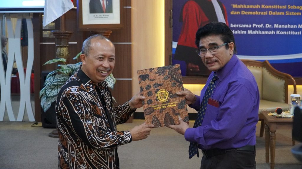 Hakim Mahkamah Konstitusi Prof. Dr. Manahan MP. Sitompul, SH. MHum belum lama ini telah memberikan kuliah pakar di Fakultas Hukum Untag Semarang yang bertajuk “Mahkamah Konstitusi Sebagai Pengawal Konstitusi, Kedaulatan Rakyat, dan Demokrasi Dalam Sistem Ketatanegaraan di Indonesia”.