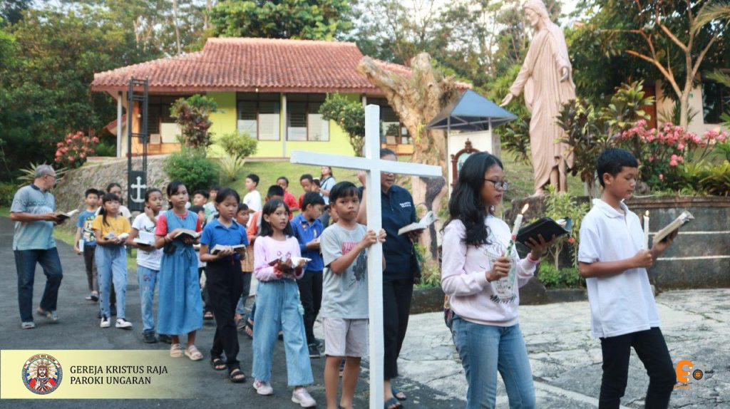Tanggal 27 Mei 2024 para Calon Komuni melakukan doa Jalan Salib di area Rumah Retret/Panti Semadi Susteran AK Gedanganak, Ungaran.