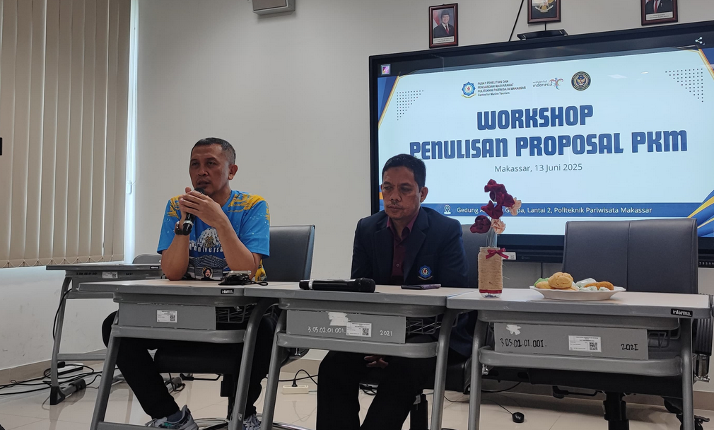 Makassar, 13 Juni 2025 — Politeknik Pariwisata Makassar melalui Pusat Penelitian dan Pengabdian kepada Masyarakat (P3M) melaksanakan Workshop Penulisan Proposal Pengabdian kepada Masyarakat (PKM) pada Jumat, 13 Juni 2025, bertempat di Gedung Amanna Gappa, Lantai 2 Poltekpar. Kegiatan ini bertujuan mendorong percepatan penyelesaian proposal PKM secara kolektif dan kolaboratif oleh para dosen.
